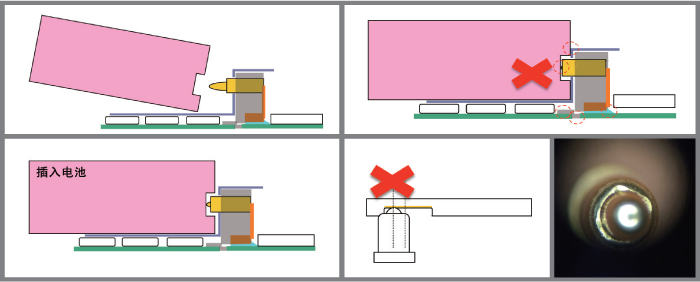 3、與Pogo Pin配對(duì)的電池觸片或FPC金手指不能有臟污、氧化等。